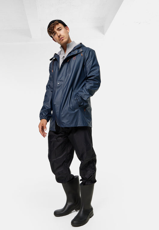 - DETAILS & HIGHLIGHTS: Halblanger Regenmantel mit Kapuze, mit Reißverschluss und Knopfleiste, seitliche Pattentaschen mit Knopf, Kordel mit Kordelstopper an der Kapuze.